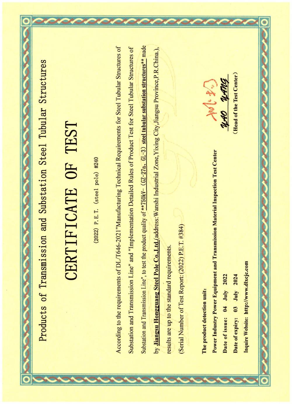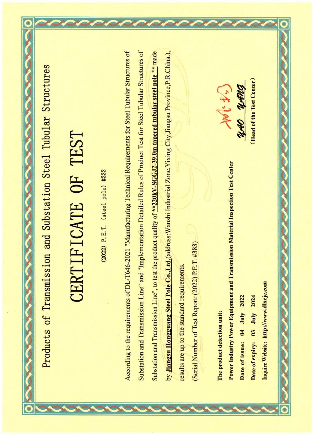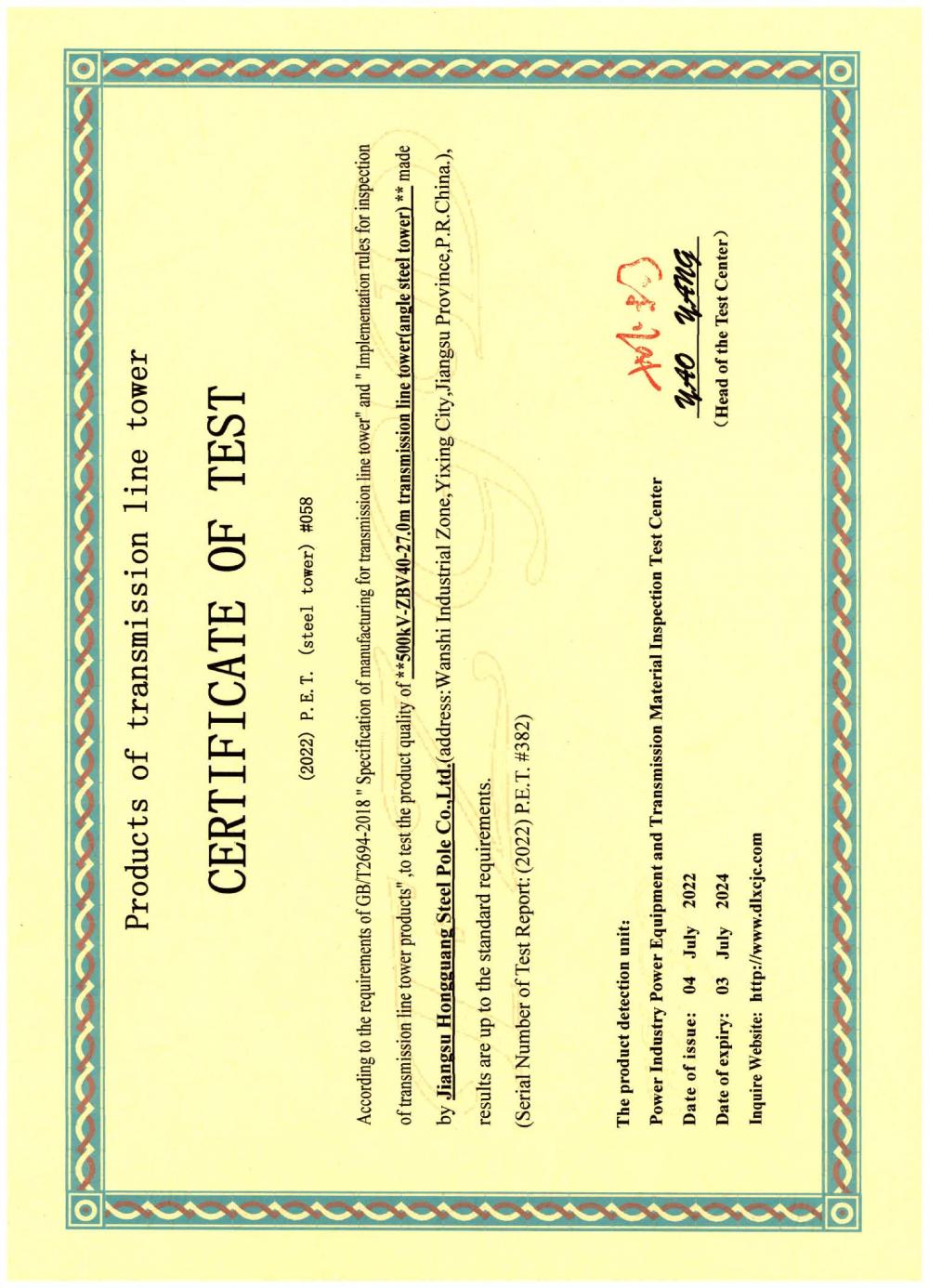 | Magaca Shahaadada: | Certificate of Test |