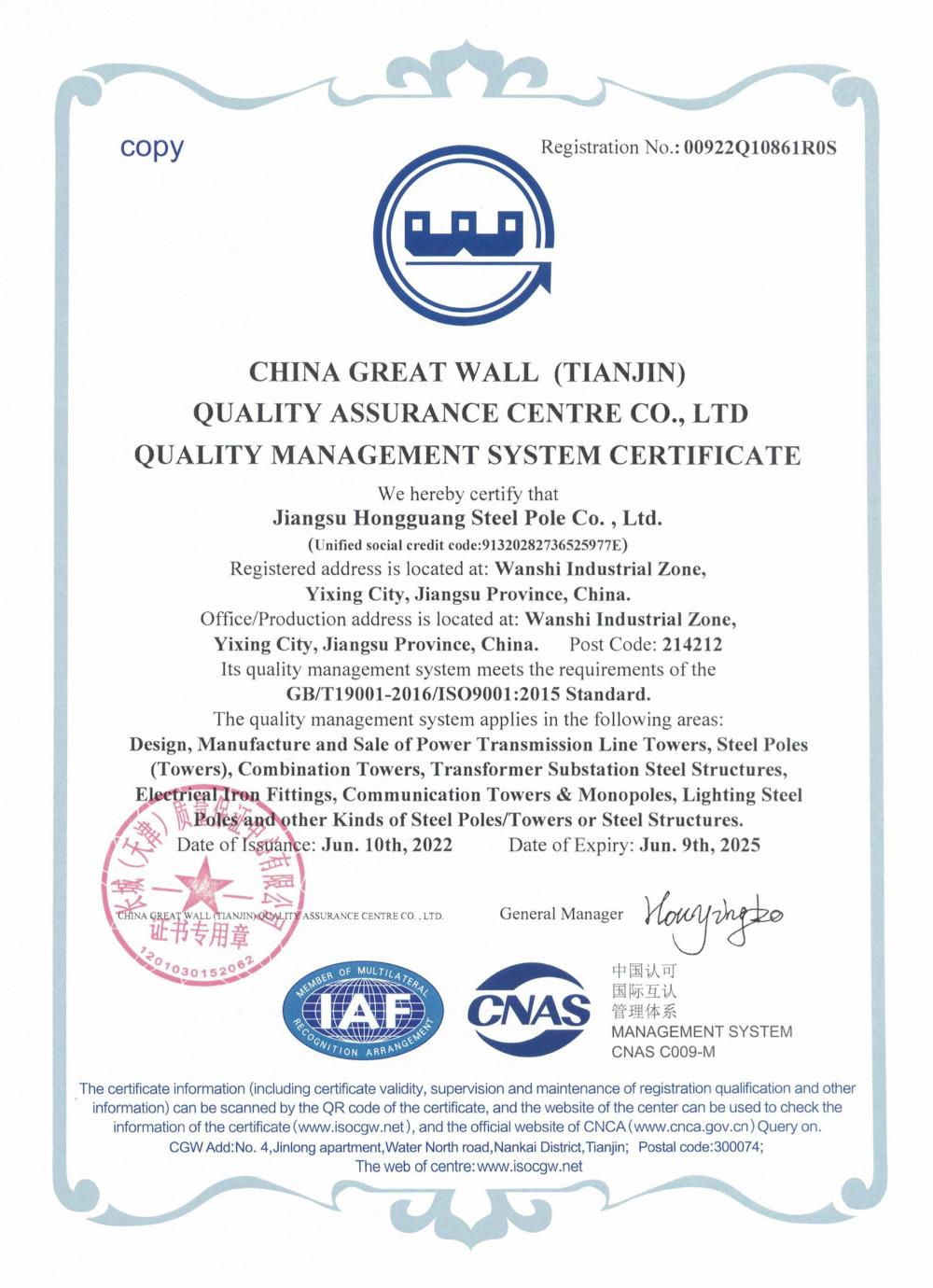 | Magaca Shahaadada: | Quality Management System Certificate |
